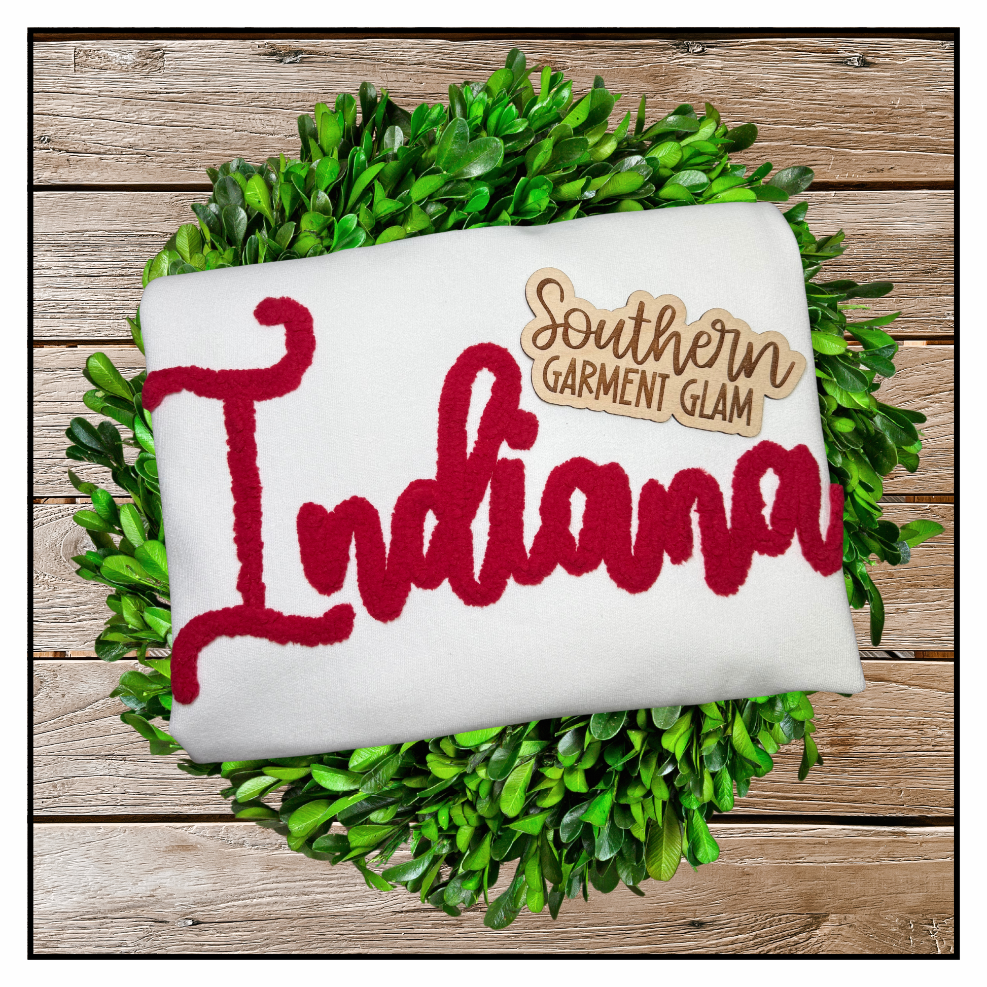 Add a cozy touch and school spirit to your wardrobe with this beautiful Hoosiers Spirit Sweatshirt embroidered with chenille yarn!